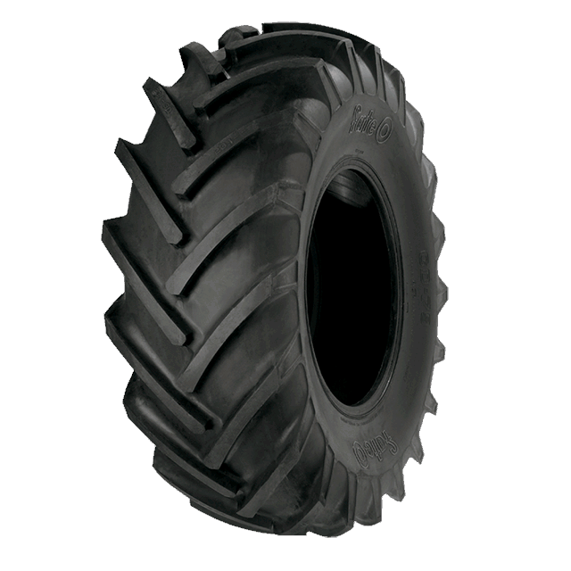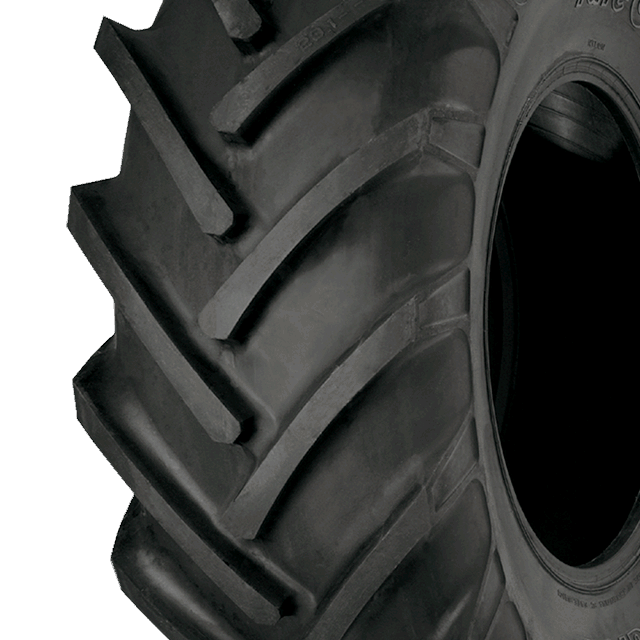 Neumático de tracción (R-1) para maquinaria agrícola con diseño de tacos a 45° de gran poder autolimpiante en todo tipo de suelos. Desarrollado para minimizar el patinamiento del neumático y obtener una baja resistencia a la rodadura generando ahorro de combustible.