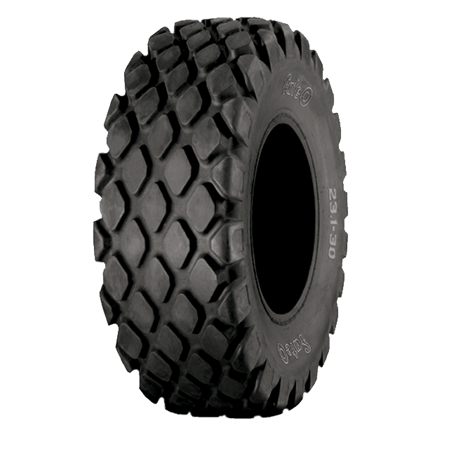 Neumático agrícola de tipo tracción para uso en implementos de transporte de granos por arrastre en combinación con tractor y máquina cosechadora. Su perfil R-3 de baja profundidad otorga una elevada superficie de contacto y una mayor flotación respecto de un neumático de tracción normal.