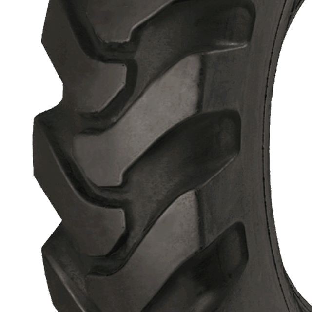 Neumático de tracción para maquinaria vial. Diseño de tacos anchos (G-2) con buena tracción en servicios de motoniveladoras y palas cargadoras.